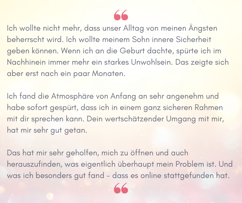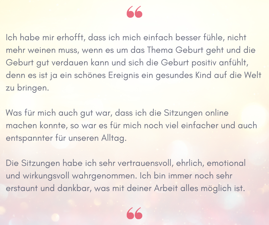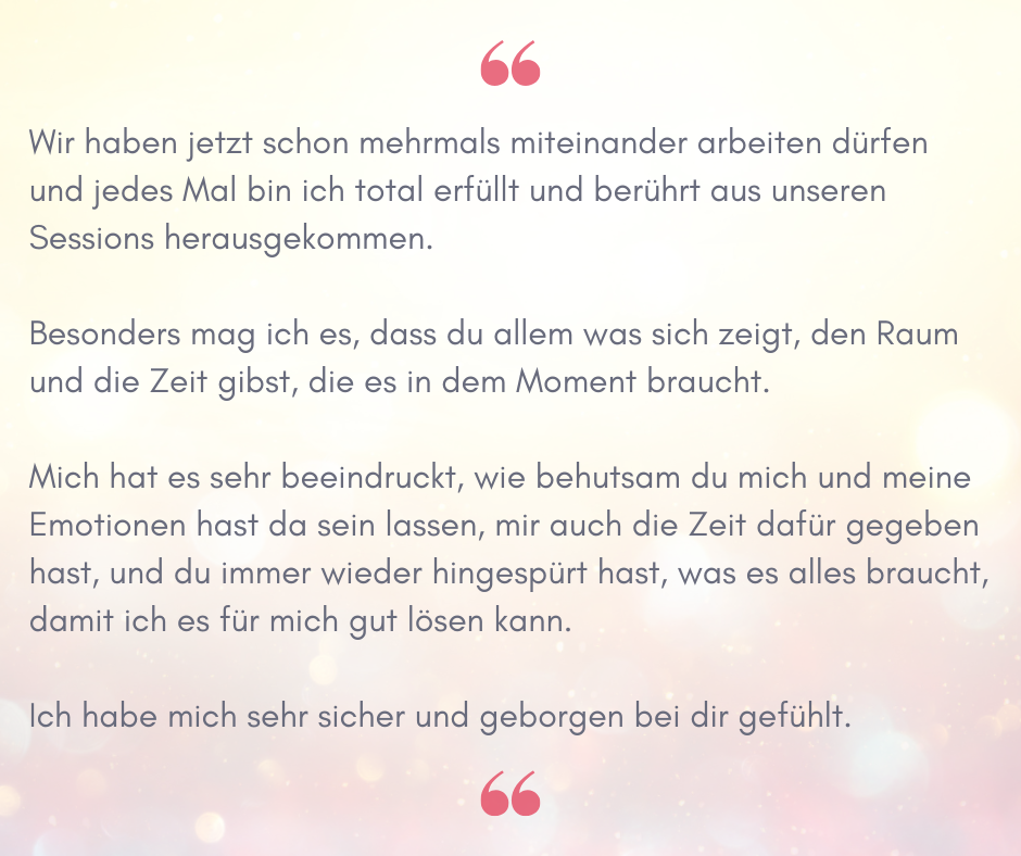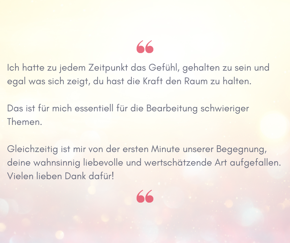 "Ich hatte zu jedem Zeitpunkt das Gefühl, gehalten zu sein und egal was sich zeigt, du hast die Kraft, den Raum zu halten." -Klientin
